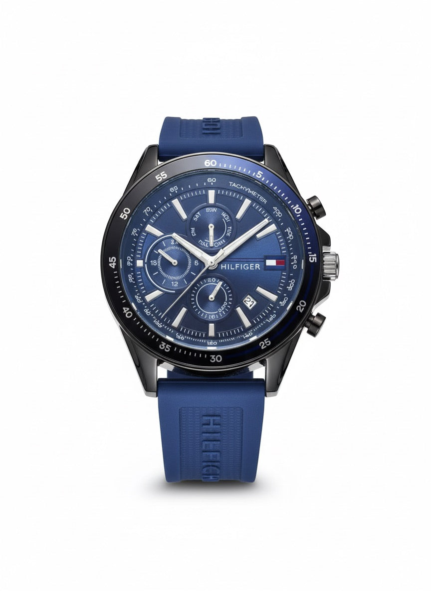 Tommy Hilfiger Style Watch – Blue Dial, Blue Silicone Strap