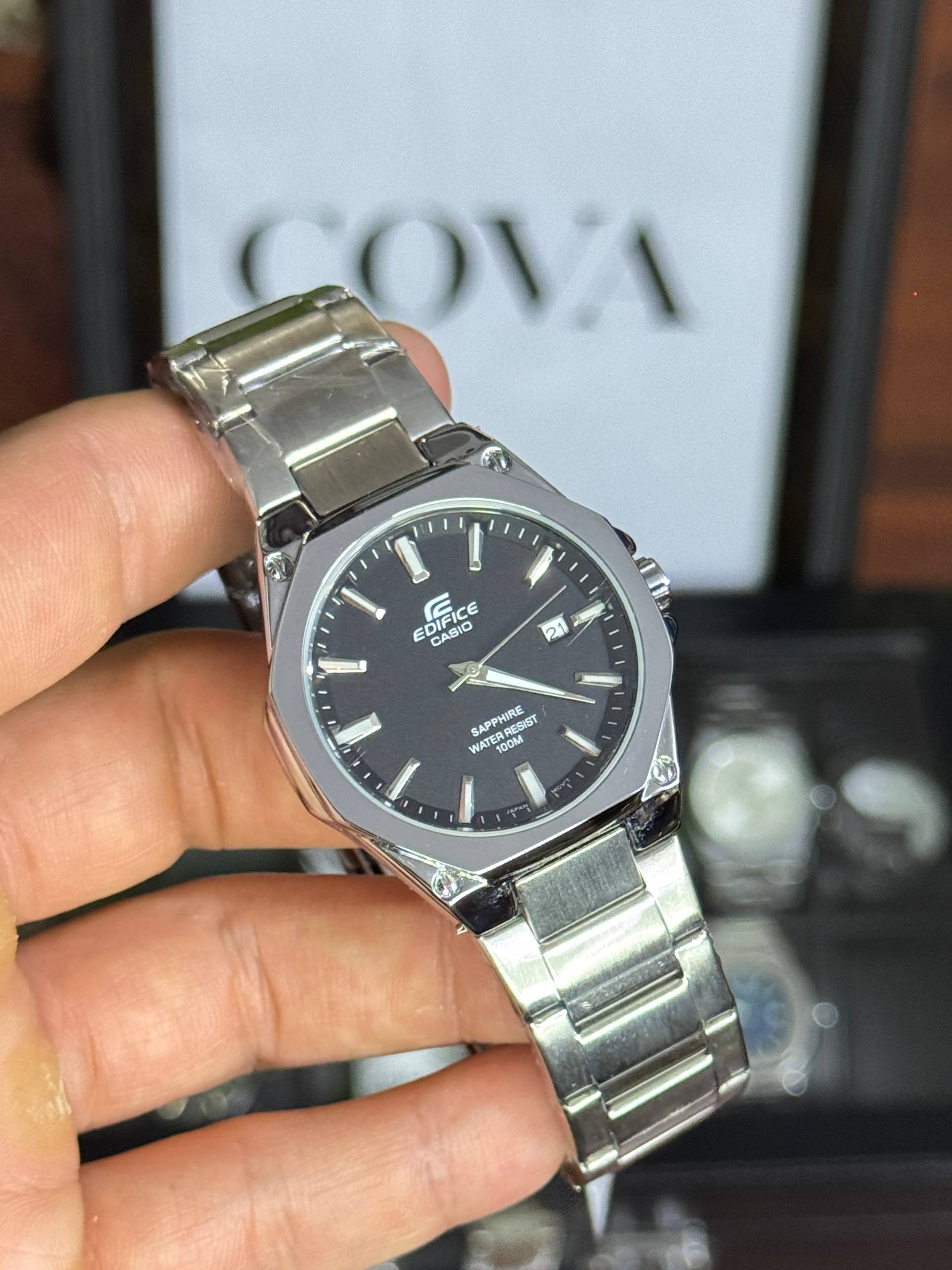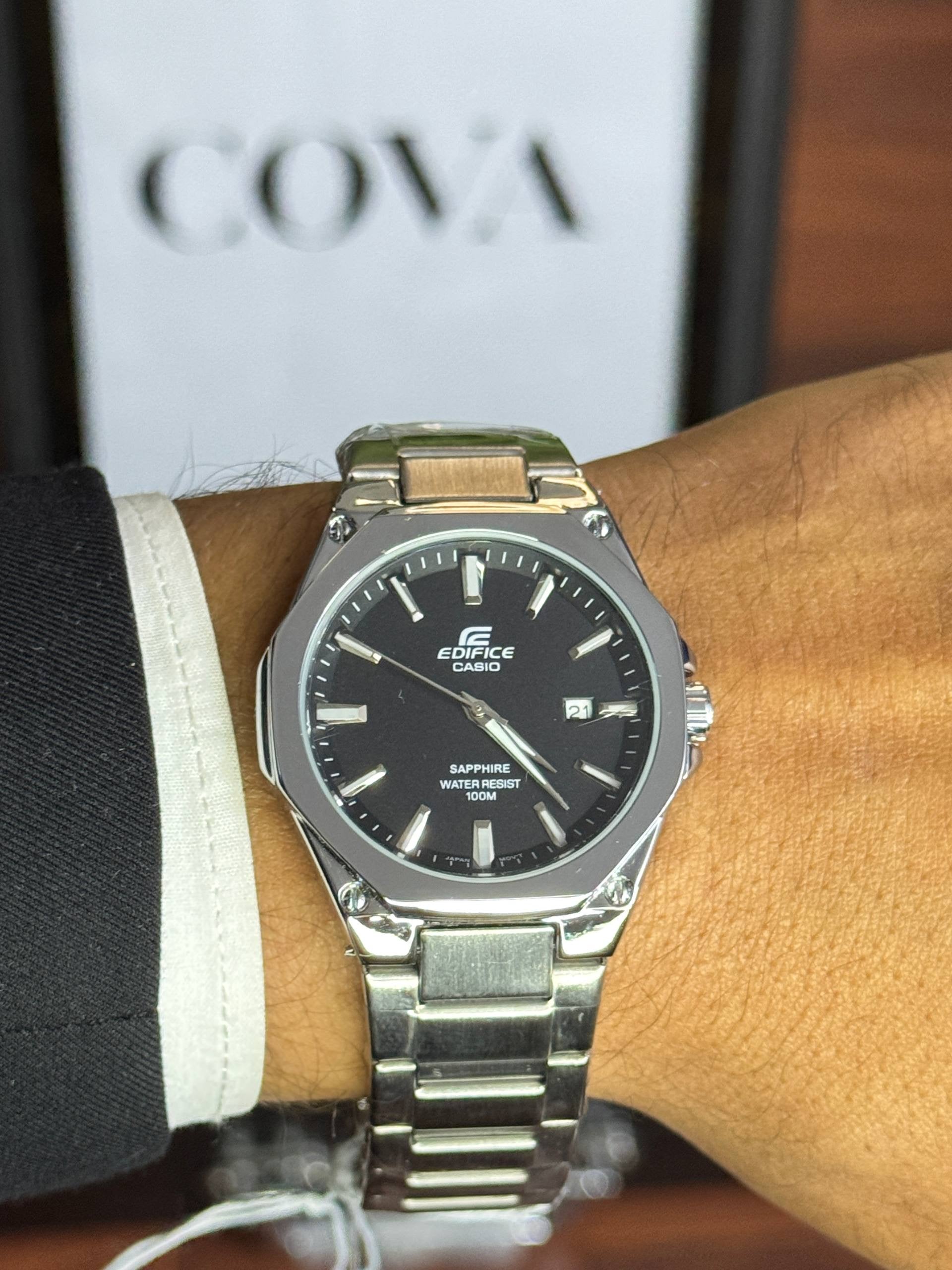 • Dial: مينا أسود بعقارب ومؤشرات فضية + نافذة تاريخ