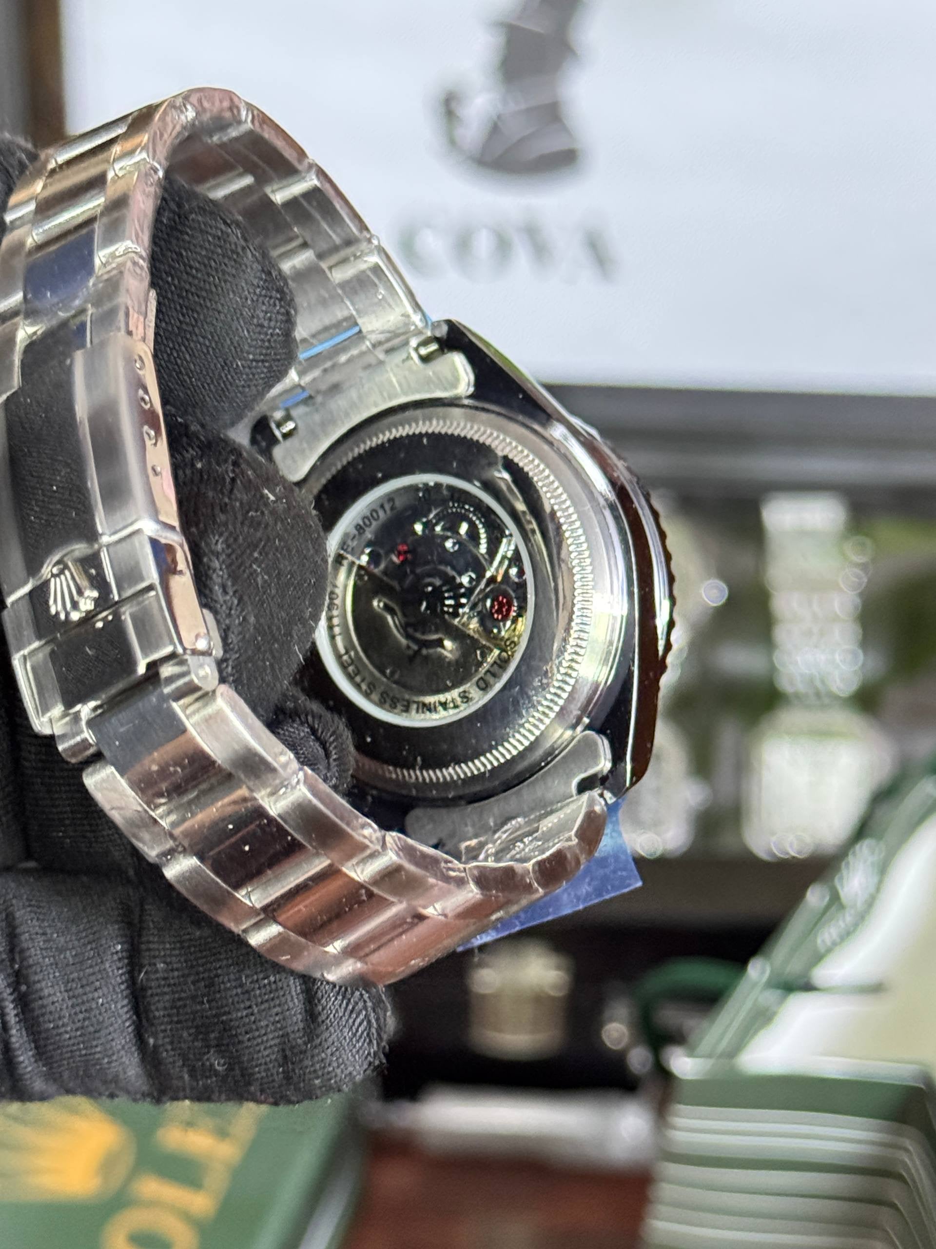 ROLEX OYSTER PERPETUAL SUBMARINER CERAMIC BEZEL WATCH GREEN WITH STAINLESS STEEL SILVER BELT ( OPEN CASE )